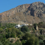 Unsere Beine schmerzen, der gestrige Marsch war ziemlich anstrengend. Deshalb wollen wir heute lieber nur so eine Art Spaziergang machen. Ausgestattet mit einer Karte und Hinweisen von Julie, unserer Gastgeberin, gehen wir im Dorf abwärts zum Fluss. Auf der gegenüberliegenden Seite ehebt sich der Berg mit dem suggestiven Namen Ahí de Cara, was soviel heißt wie “da gegenüber”. Hinauf führt eine schmale Straße, die oft einen Abschnitt der Vuelta de España bildet. Die durchschnittliche Steigung beträgt 12%, das Maximum 22%. Auf dem Asphalt sind Namen und Zusprüche zu lesen. Wir folgen der Straße bis zu einer Gruppe von cortijos.