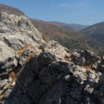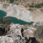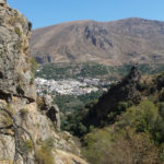 Oberhalb der Talsperre, am Pico de la Lastra, sind die Reste einer ehemaligen Burganlage zu erkennen, dem Castillejo de Güéjar. Dorthin wollen wir. Wieder sind Karte und Beschreibungen nur orientativ und wir verlaufen uns auf einem sehr schmalen Pfad entlang einer acequia – einem kleinen Bewässerungskanal. Die Idee vom “Spaziergang” hat sich überholt. Das Gelände ist steil und wir müssen häufig durch dorniges Gestrüpp kriechen. Auf dem betonierten Rücken eines alten Aquädukts überqueren wir die Schlucht und versuchen über die Felsen hochzuklettern zu einem Weg, den wir von unten sehen konnten. Das geben wir jedoch schnell wieder auf und überlassen das Klettern den Bergziegen, die wir ab und zu in schwindelnden Höhen an den Felsen entlanghopsen sehen. Eine gute Entscheidung, wie sich schnell zeigt. Nur ein paar hundert Meter weiter auf dem alten Pfad erreichen wir den gekennzeichneten Wanderweg, der an einer flachen Stelle über den Wasserlauf in der Schlucht führt und uns sicher zum Castillejo bringt.