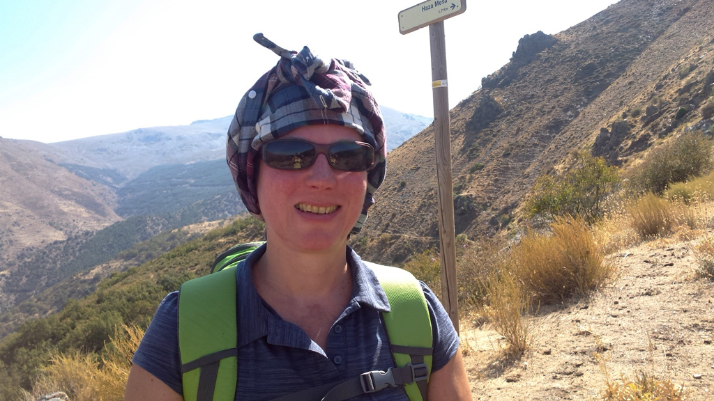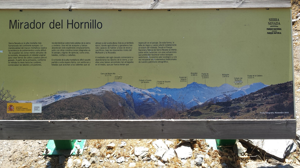 Am zweiten Tag gehen wir auf den Weg mit dem Namen La Vereda de la Estrella. Mit dem Auto fahren wir auf einer schmalen, gewundenen Straße am Fluss Genil entlang aus dem Dorf raus bis zum Barranco de San Juan. Hier lassen wir den Wagen stehen. Der Weg wird viel empfohlen und Laura hat uns eine Route beschrieben, die besonders schön sein soll . Das ist sie tatsächlich, aber auch besonders steil. Wir sind noch nicht aklimatisiert und die Höhenluft ist dünn. Der Weg ist an manchen Stellen schwer zu identifizieren. Auch die Angaben auf den verschiedenen Karten und Wegweisern stimmen nicht miteinander überein. Alles in allem raten wir viel und hoffen uns nicht komplett zu verlaufen. Das klappt (heute).