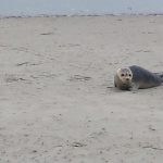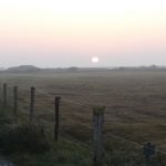 Um 6:30 fahre ich mit dem Fahrrad an das östliche Ende der Insel, um dort den Sonnenaufgang zu sehen. Am Osterhook ist eine Beobachtungsstation für Vögel und Robben in einer großen, unzugänglichen Ruhezone für die Tiere. Schon bevor es hell wird kann man sehr viele verschiedene Vogelrufe hören. Der Sonnenaufgang ist heute nicht ganz so spektakulär, wie am Vortag. Aber am späten Vormittag kommt die Sonne wieder raus und wir fahren noch mal gemeinsam ans Ostende. Gegen 13 Uhr steht die Flut hoch und die riesigen Vogelscharen (Seeschwalben, Kormorane, Möven und andere) tummeln sich in Landnähe am Strand.