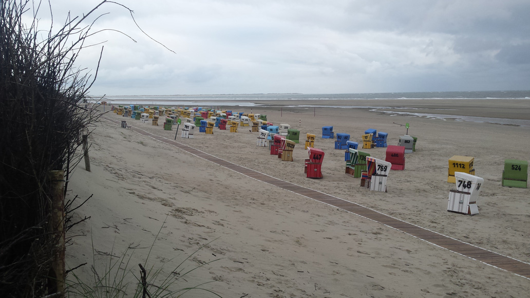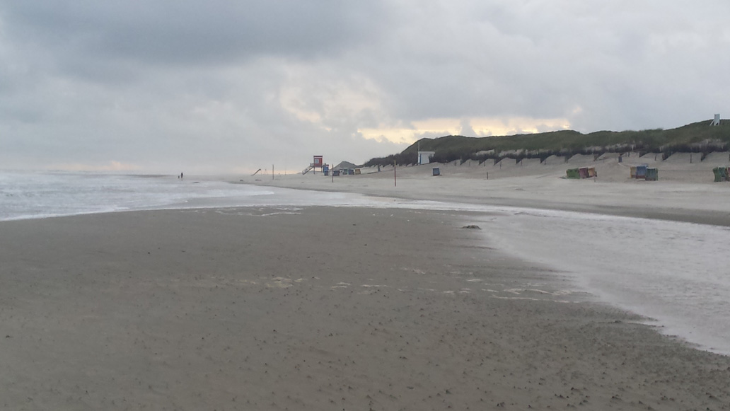 Morgend nach dem Aufstehen gehe ich eine Stunde am Strand spazieren. Der Wind, die salzige Luft und das Rauschen der Nordsee lassen alles vergessen und man möchte ewig so weiterlaufen. Zu dieser Jahreszeit ist es auch morgens noch recht einsam, nur ein paar Jogger säumen die Wasserkante, wo der Sand etwas fester ist. Die Badesaison ist beendet, Strandköre werden eingesammelt, sie machen Platz für Theodor-Storm-Gedanken.