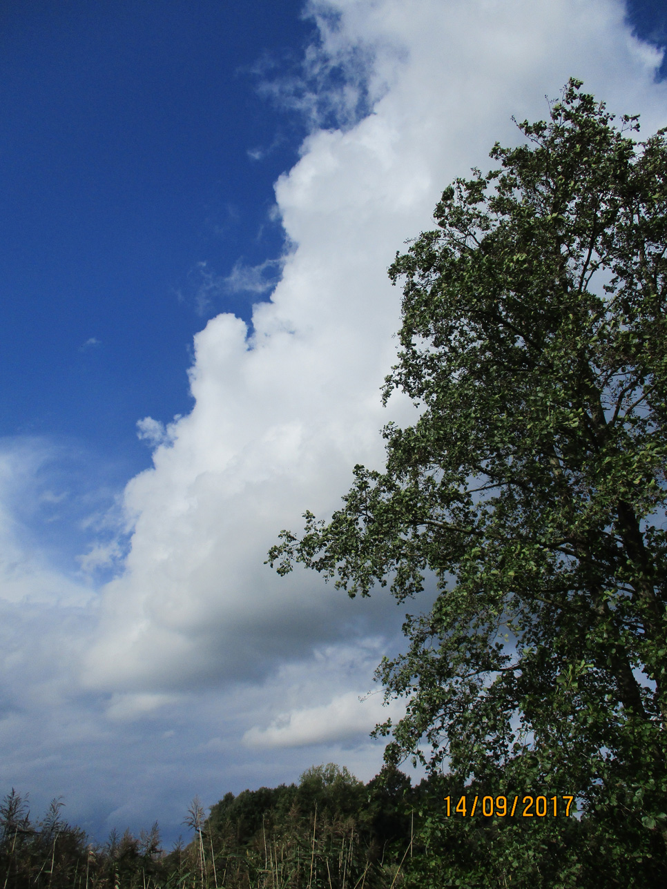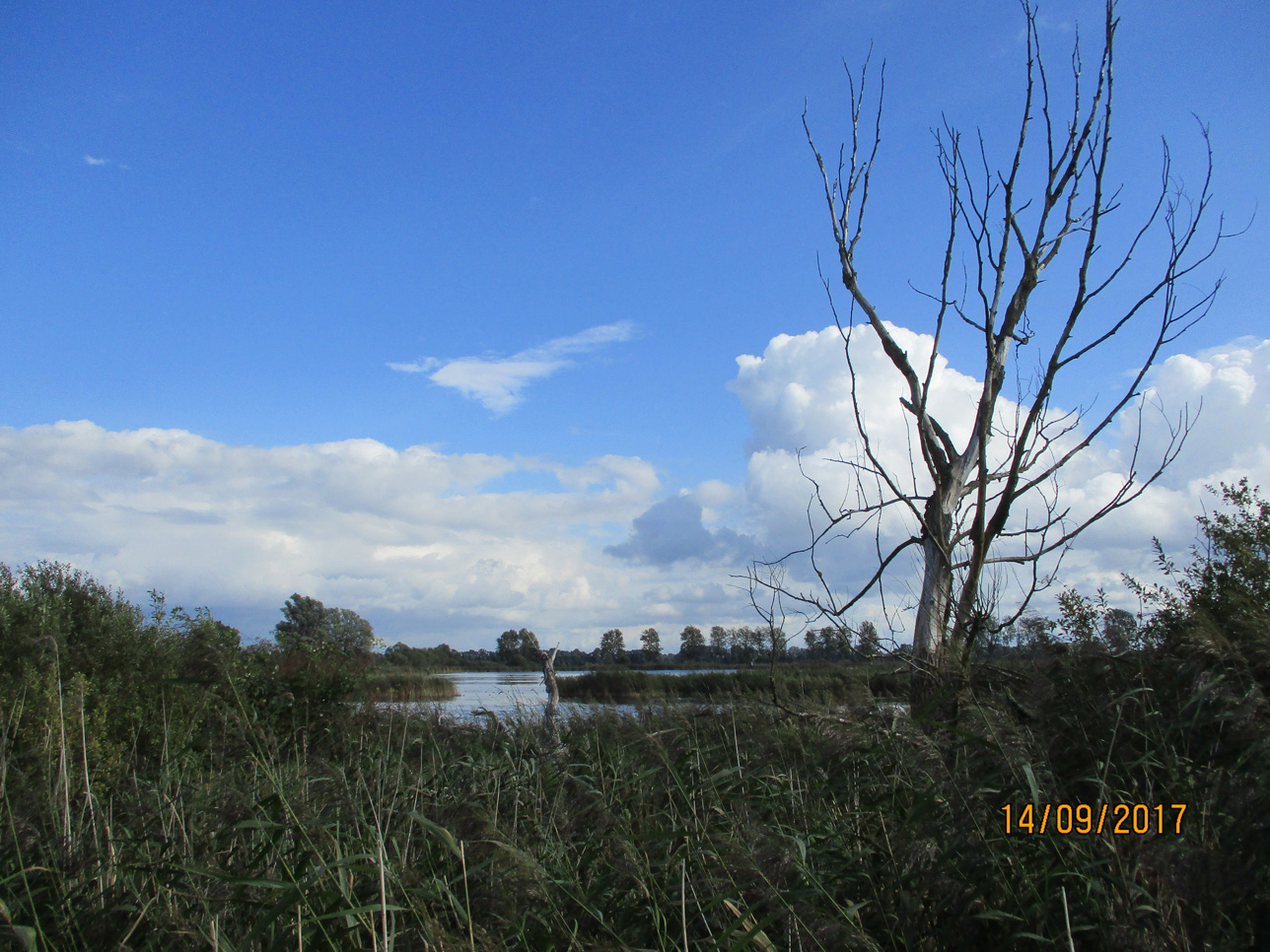 In linum, am 14. September 2017, sind schon die Gänse angekommen. Man spürt deutlich, dass der Herbst kommt. Der heftige Wind jagt mächtige Wolken über den strahlend blauen Himmel.