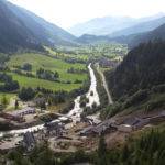 In Vipiteno haben wir nur ein paar Minuten, bevor der Bus uns auf dem letzten Reiseabschnitt nach Maiern bringt. In Maiern angekommen, suchen wir erstmal eine Weile nach unserer Gastgeberin und finden sie schließlich bei der Heuernte auf einer etwas entfernt liegenden Wiese. Von ihr bekommen wir den Tipp, in der Knappenstube zu Abend zu essen, was sich als sehr lohnend herausstellt. Das Restaurant liegt am Ende des Tals, inmitten der ehemaligen Bergbauanlagen. Man kann die Gebäude und auch die Stollen auf geführten Touren besuchen. Wir beschränken uns allerdings auf das Essen. Der Erzabbau hat seinerzeit in der Region eine große Rolle gespielt und den Fuggern in Sterzing zu großem Reichtum verholfen.
