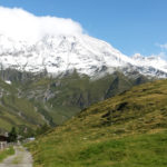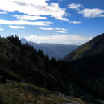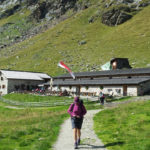 Nach einem ausgedehnten Frühstück im Jörgelehof starten wir unsere Wandertour auf dem Romedius-Pilgerweg. Der heutige Abschnitt ist kurz – nur 12 km liegen vor uns. Aber auf diesen werden wir 1300 Höhenmeter überwinden, bevor wir unser heutiges Ziel, die Schneeberghütte, erreichen. Bis zur Stadlalm führt eine sehr schmale, geteerte Straße am Fluss aufwärts. Das Gurgeln des Wassers wird uns bis zum Aufstieg über den Pass ständig begleiten. Später, nachdem der Asphalt aufgehört hat, gesellen sich Kuhglocken zum Rauschen des Flusses. Auf der Moarerbergalm kehren wir im Poschhaus ein. Hier treffen wir auf ein paar Mountainbiker – von denen gibt es erstaunlich viele hier – und zwei Wanderer aus Brandenburg, die denselben Weg laufen wie wir, aber in die entgegengesetzte Richtung. Der Himmel ist verhangen, vor uns sind die Wipfel der Berge von dicken Wolken bedeckt. Für heute abend oder morgen ist über 1800 m Schneefall angekündigt. Nach der Pause auf der Moarerbergalm wird der Weg schmaler und der Aufstieg steiler. Immer mal wieder regnet es ein wenig zwischendurch und ein einziger, blitzloser Donner erinnert uns daran, dass “Wetter” hier oben in den Bergen kein Unterhaltungsprogramm auf der Wetter-App ist.