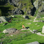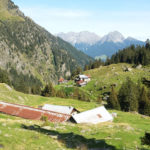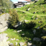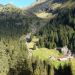 Der Weg ins Tal ist sehr gut präpariert aber auch sehr steil. Er führt immer am reißenden Spronserbach entlang abwärts bis zur Bockerhütte, wo Heide und Jutta schon in der Sonne auf der Terrasse sitzen. Die Hütte ist klein und familiär. Außer der Familie mit zwei Kindern leben hier 4 Kühe, eine hübsche Haflingerstute, Hühner, ein Schwein, ein Kaninchen, eine Katze und wer weiß was noch – ich habe diesen Ort sofort ins Herz geschlossen. Abends ist es kalt und wir sitzen lange in der geheizten Stube. Später kommt noch ein Wanderer. Beim Frühstück erzählt er uns, dass er im Wandern unerfahren ist und sich sehr kurzfristig für die Tour auf dem Romediusweg entschieden hat. Und dass der Pilgerweg einen großen Umbruch in seinem Leben einleitet.