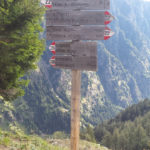 Es regnet mal stärker, mal schwächer. Gegen 15 Uhr erreichen wir Moos. Hier treffen wir wieder mit Heide und Jutta zusammen, die mit dem Bus aus Rabenstein gekommen sind. Unser Zielort Pfelders ist immer noch gute 4 Wanderstunden entfernt. Nach einem Cafébesuch in Moos nehmen wir alle zusammen den Bus nach Pfelders. Die Fahrt dorthin bestätigt uns, dass wir am heutigen Tag nichts verpasst haben. In Pfelders haben wir Unterkunft im Hotel Alpenblick, wo wir uns mit Sauna und Schwimmbad entspannen und das ausgezeichnete Essen genießen.