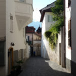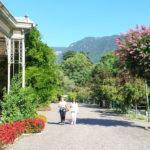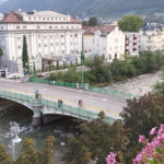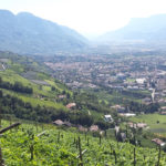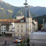 Meran strahlt in der Sonne vor dem überwältigenden Panorama der umgebenden Berge. Es ist warm, Menschen flanieren entspannt auf der Promenade, trinken Kaffee und essen Eis. Genau so verbringen auch wir den Nachmittag, nachdem wir uns wieder mit Jutta getroffen haben, unter hohen Bäumen vor der romantischen Wandelhalle. Anschließend schlendern wir durch die kleine, beschauliche Innenstadt. Heide kommt am Abend gegen 7 mit dem Bus aus Dorf Tirol und wir verbringen unseren letzten gemeinsamen Abend dieser Tour in einem Restaurant auf der Promenade.