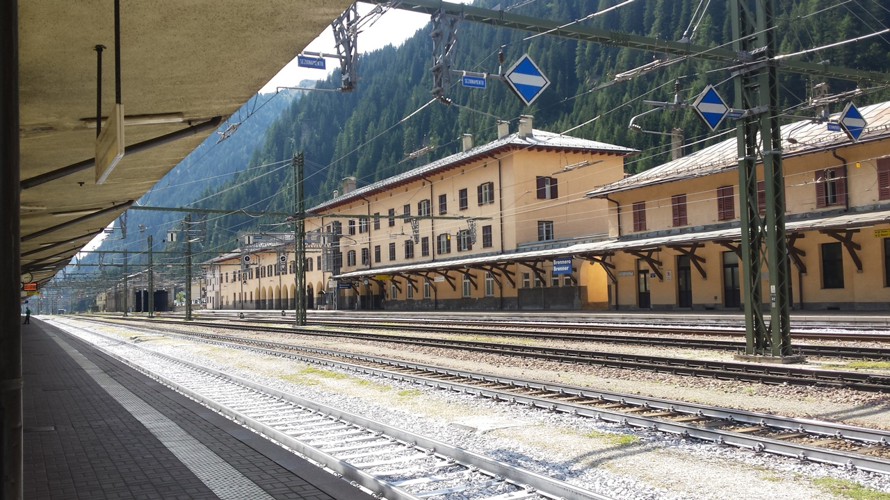 Abfahrt ab Hbf. um 6:30. Um 6:38 steigen am Südkreuz Kerstin, Heide und Jutta zu. Um 11 Uhr kommt der ICE in München an, um 11:30 fahren wir weiter mit dem IC nach Brenner. Hier warten wir 20 Minuten auf den Anschlusszug nach Sterzing/Vipiteno. Zeit genug, um den Betrieb an der Grenze zwischen Österreich und Italien zu bestaunen. Eigentlich machen die Grenzsoldaten einen furchteinflößenden Eindruck. Aber die ernsten Gesichter, die aus den derben Militär-Uniformen ragen, krönt ein tarnfarbenes Tirolerhütchen, in der Kombination ein lustiges Accessoir.