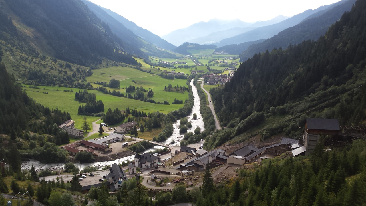 In Vipiteno haben wir nur ein paar Minuten, bevor der Bus uns auf dem letzten Reiseabschnitt nach Maiern bringt. In Maiern angekommen, suchen wir erstmal eine Weile nach unserer Gastgeberin und finden sie schließlich bei der Heuernte auf einer etwas entfernt liegenden Wiese. Von ihr bekommen wir den Tipp, in der Knappenstube zu Abend zu essen, was sich als sehr lohnend herausstellt. Das Restaurant liegt am Ende des Tals, inmitten der ehemaligen Bergbauanlagen. Man kann die Gebäude und auch die Stollen auf geführten Touren besuchen. Wir beschränken uns allerdings auf das Essen. Der Erzabbau hat seinerzeit in der Region eine große Rolle gespielt und den Fuggern in Sterzing zu großem Reichtum verholfen.