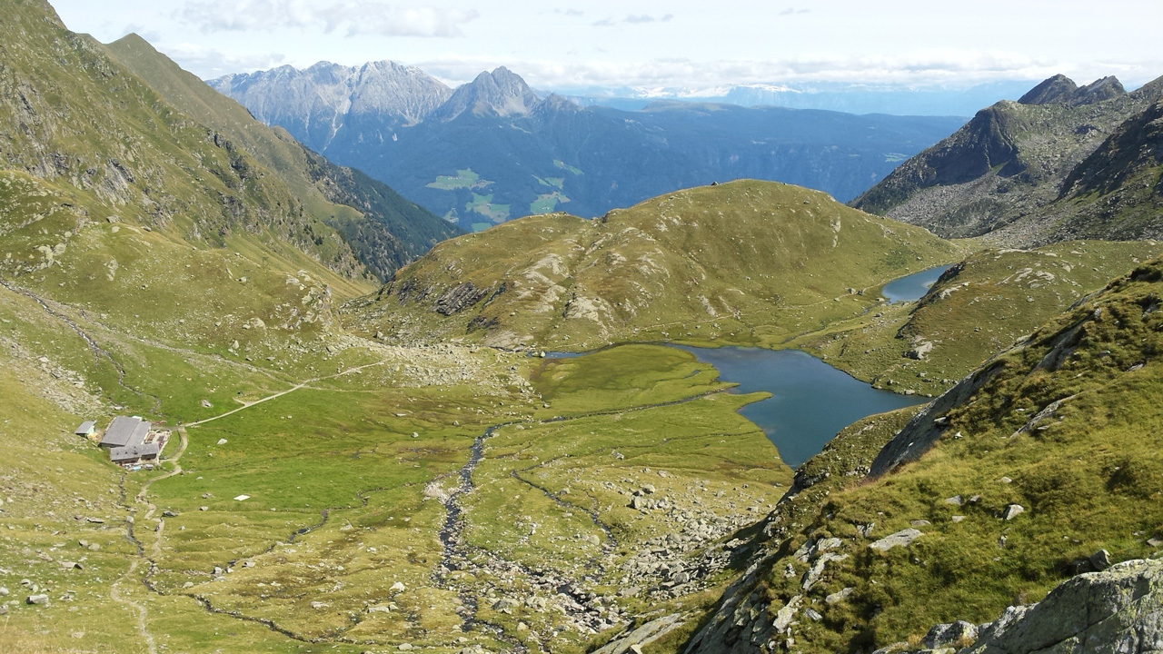 Bisher haben wir auf unserem Weg nur wenig andere Wanderer getroffen. Das ändert sich nun beim Abstieg in das Spronsertal. Die Spronser Seen sind ein beliebtes Ausflugsziel und die meisten Wanderer kommen über das Spronsertal hier rauf. Die Seen liegen dicht beieinander auf unterschiedlichen Höhen und sind teilweise von beeindruckenden Wasserfällen miteinander verbunden. Auf der Oberkaseralm machen wir eine längere Pause bei Apfelstrudel und Kaffee. Die Hütte ist sehr belebt, viele Gäste werden hier übernachten – wir werfen einen kurzen Blick in das Bettenlager.